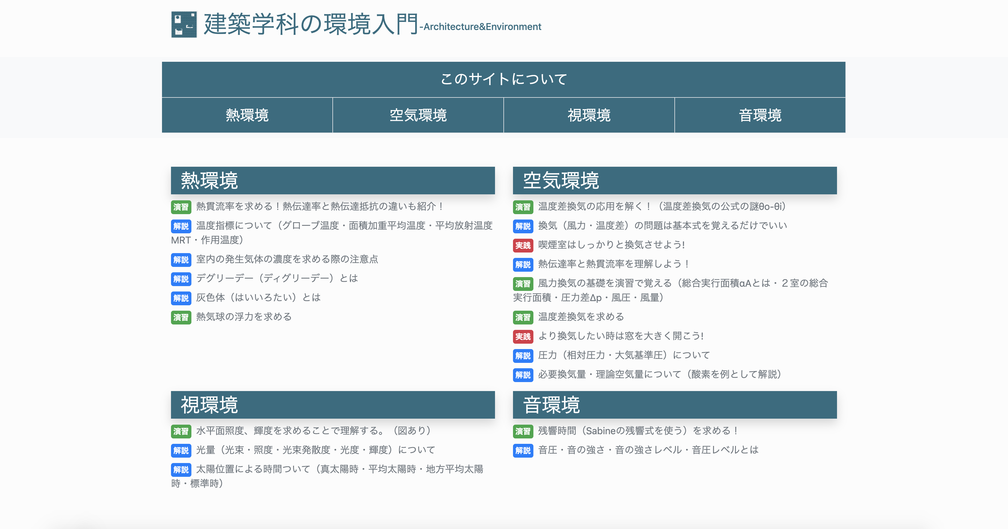 建築環境工学の入門レベルをわかりやすく解説するサイト